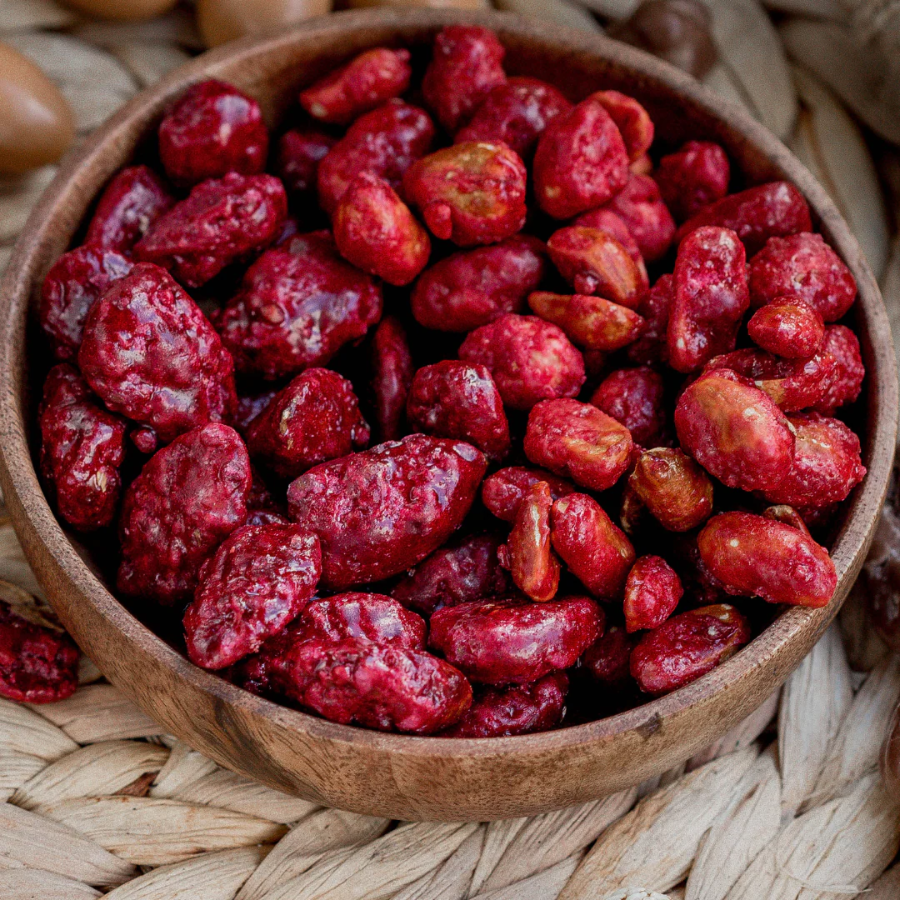 El maní confitado frambuesa es una deliciosa combinación de maní crujiente recubierto con una capa dulce y afrutada con sabor a frambuesa. Su contraste entre lo crocante y lo suave, junto al toque frutal, lo convierte en el snack perfecto para sorprender tu paladar. Ideal para disfrutar solo, compartir o darle un giro especial a tus picoteos.